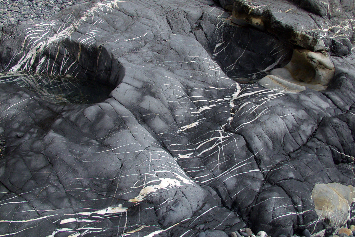 Magnifiques filons dans les roches. Vérifier de quelle roche il s’agit. Quelle formation ?