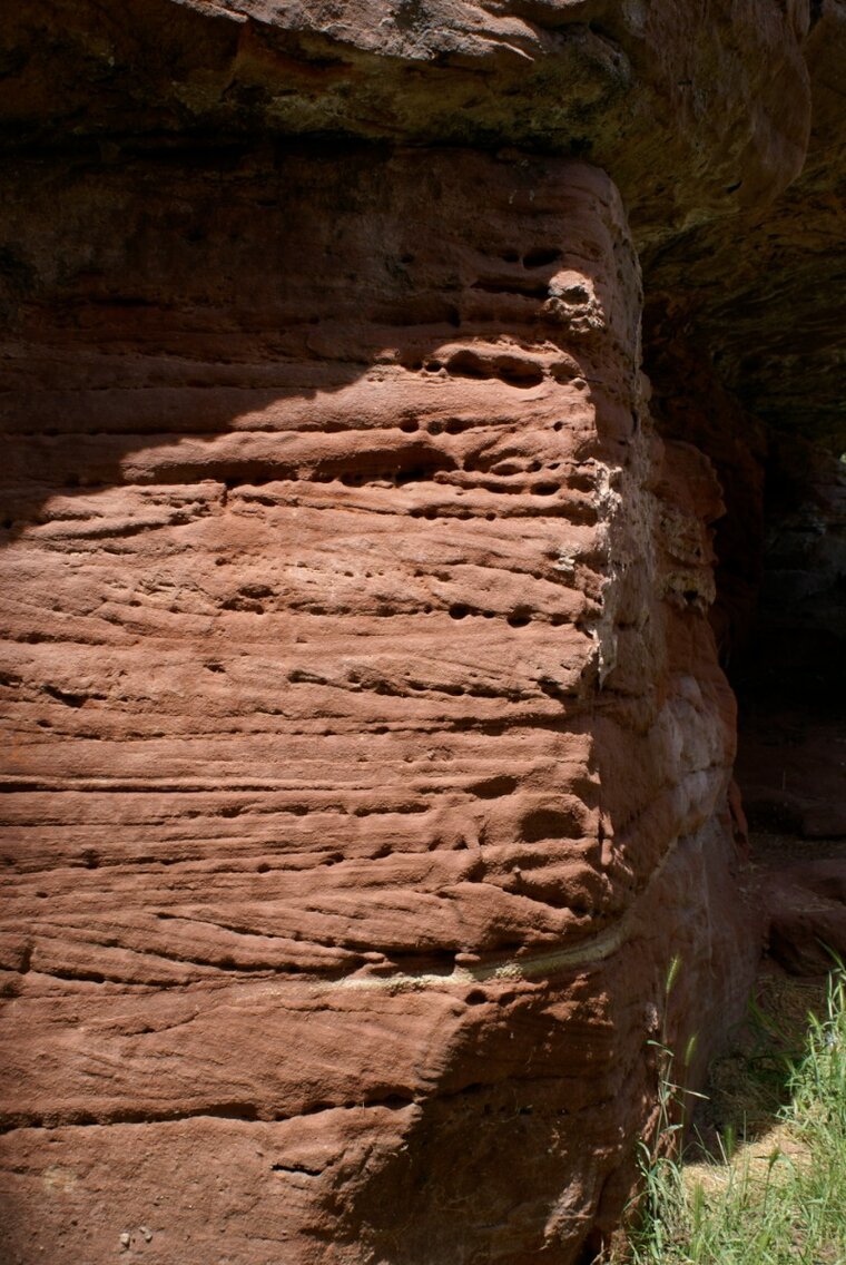 La falaise offre un point de vue à 90° et permet de classifier les mégarides. On y rencontre les 2D et les 3D que l’on distingue par des stratifications entrecroisées à 90° et obliques de face.