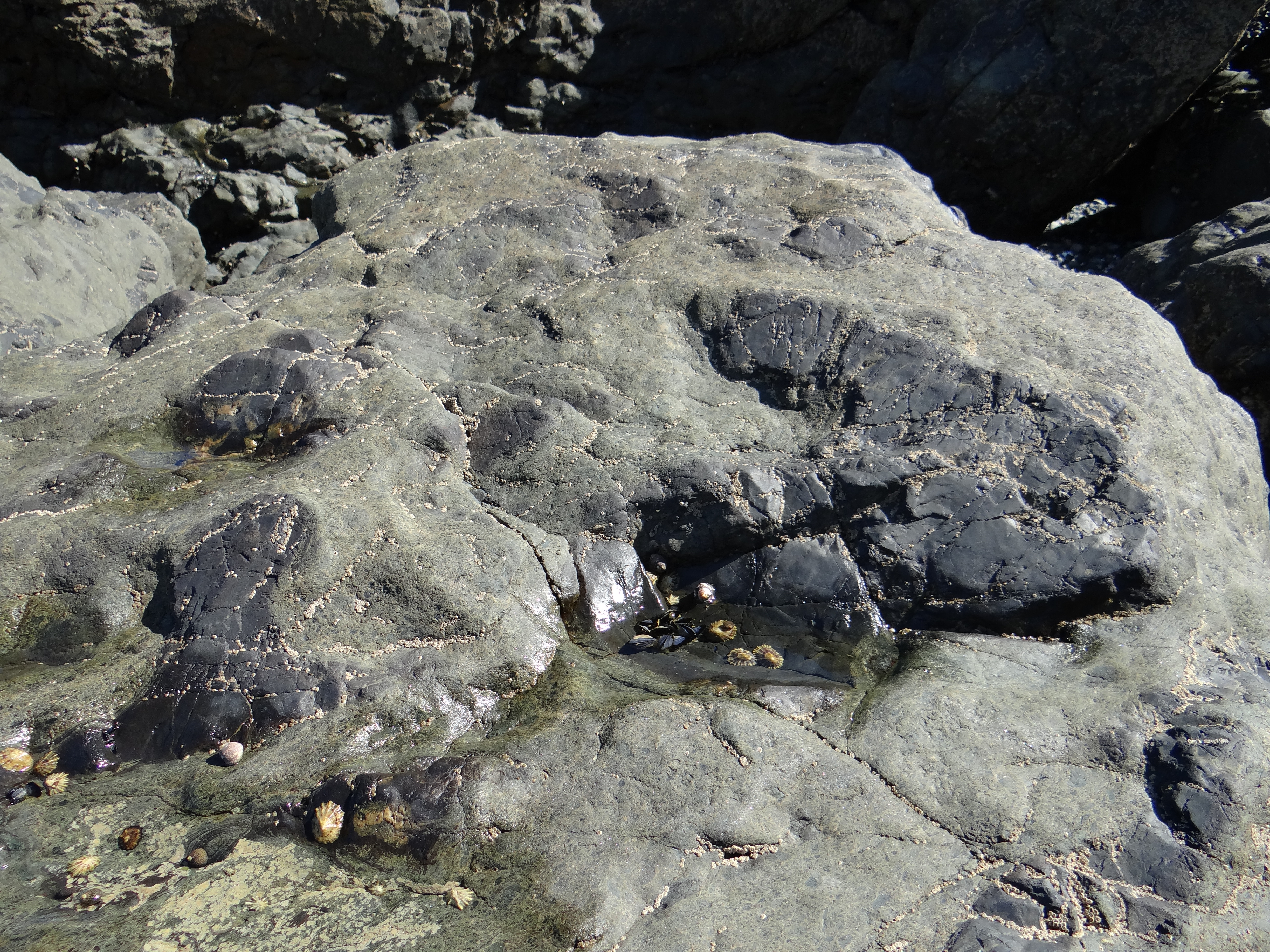 Hyaloclastite - Brèche volcanique à nombreux fragments anguleux de coussins de lave (le plus gros fragment ici fait environ 50 cm de long).