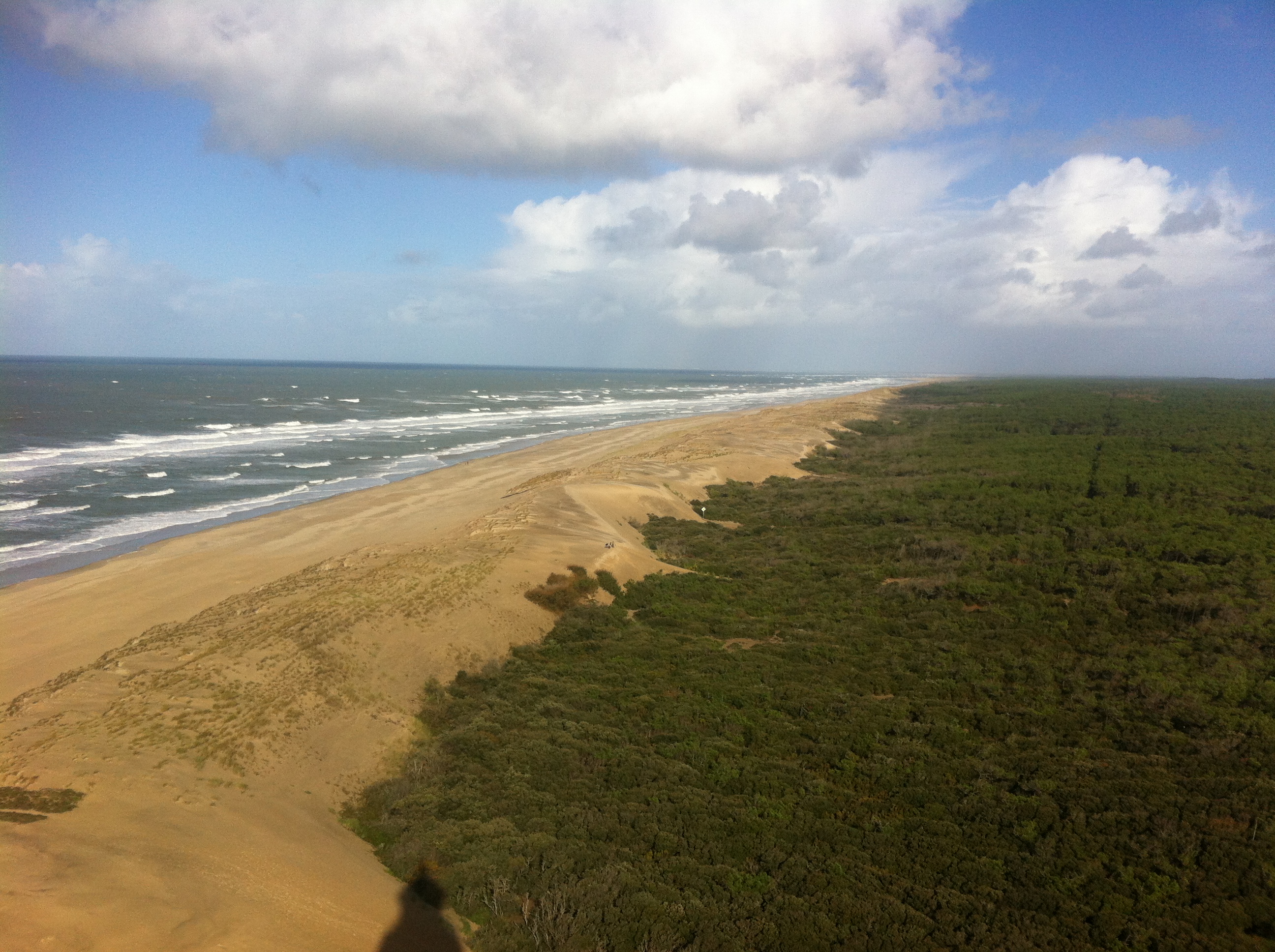 La vue depuis le phare de la Coubre permet de voir le grand cordon de dunes littorales qui sépare l’océan de la forêt. Un courant de dérive littorale érode fortement cette portion de côte dont le sable est emporté vers le sud formant la pointe de la Coubre qui obstrue partiellement le nord de la sortie de l’estuaire de la Gironde.