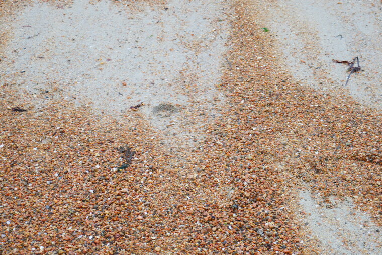 L’altération du granite rose produit des arènes comme ici sur la Grève Rose de Trégastel-Plage. Les grains roses sont des orthoses.