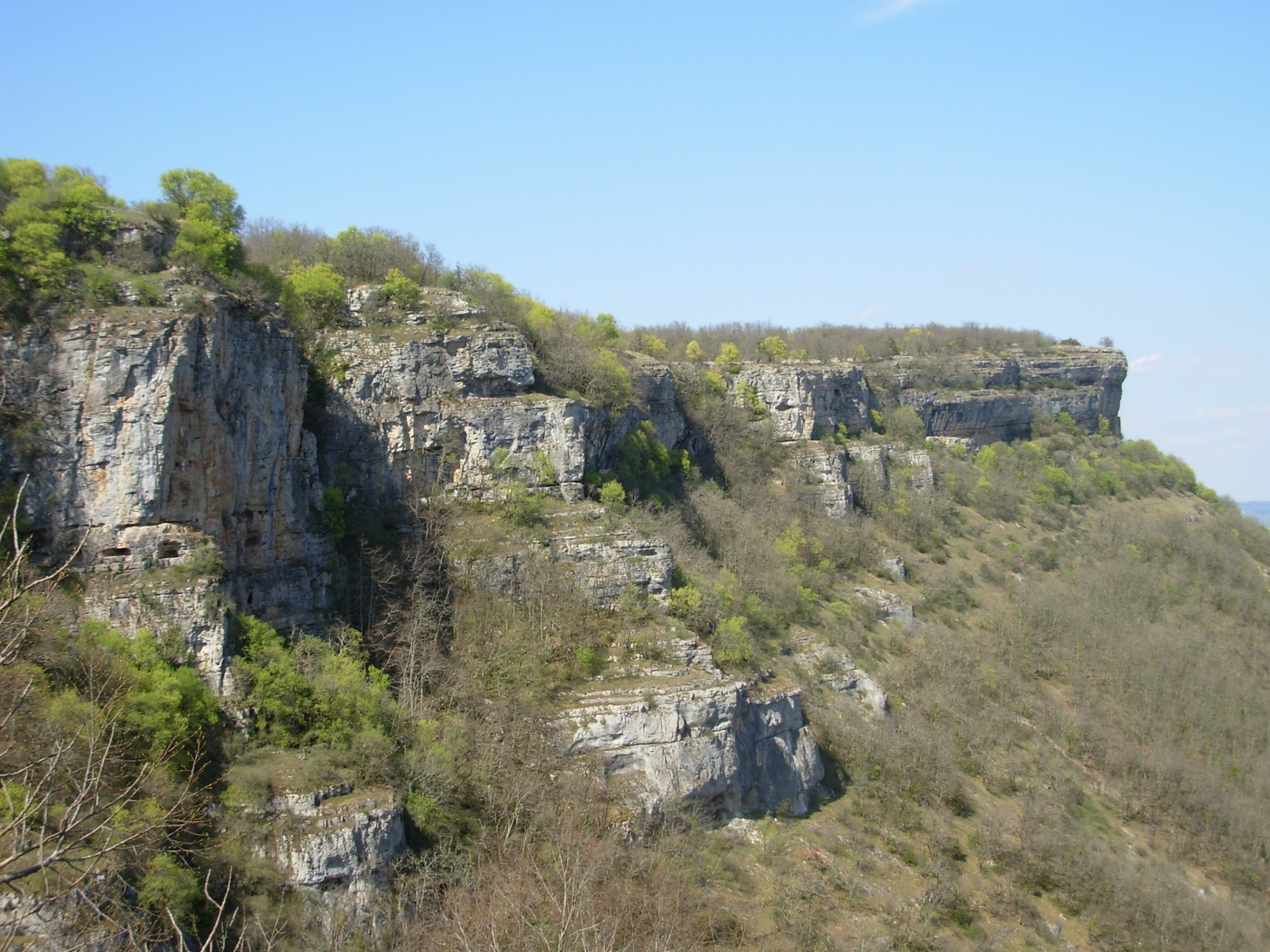 Falaise calcaire près d’Autoire (Bassin aquitain) , calcaires à bioclastes (300m environ)