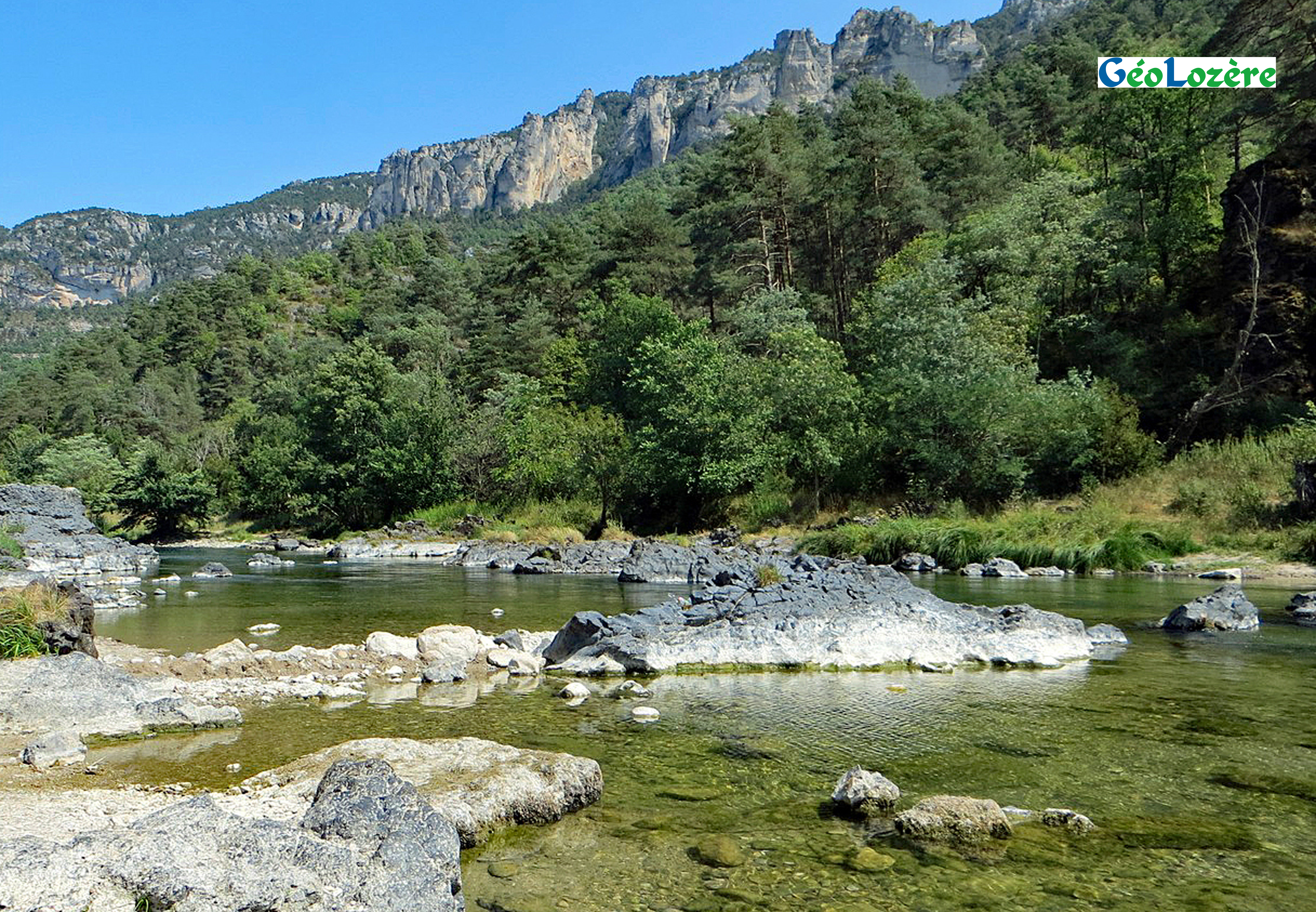 A Eglazines, à quelques kilomètres au Nord du Rozier dans les gorges du Tarn, une cheminée volcanique assez complexe fait affleurer des rochers basaltiques dans le lit de la rivière au pied des falaises calcaires des Causses Méjean et de Sauveterre. C’est l’une des discrètes mais nombreuses cheminées volcaniques qui percent la carapace des calcaires jurassiques, depuis Espalion au Nord-Ouest jusqu’à Lodève au Sud.