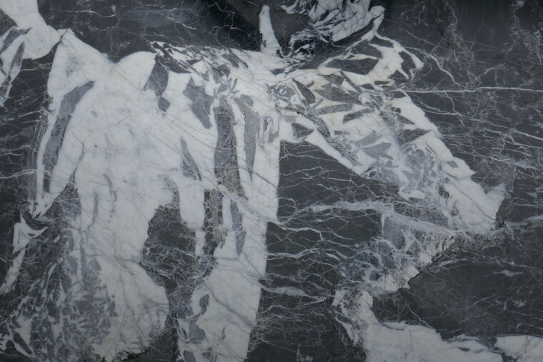 Ce marbre est géologiquement une brèche calcaire d’âge aptien (crétacé) avec des blocs noirs micritiques traversés par des filons de calcite blanche. Nommé par les marbriers "Grand Antique" car utilisé dès l’empire romain, il offre un aspect décoratif remarquable qui a été utilisé dans de nombreux monuments : Invalides, Versailles, Saint Pierre de Rome, Hagia Sophia...