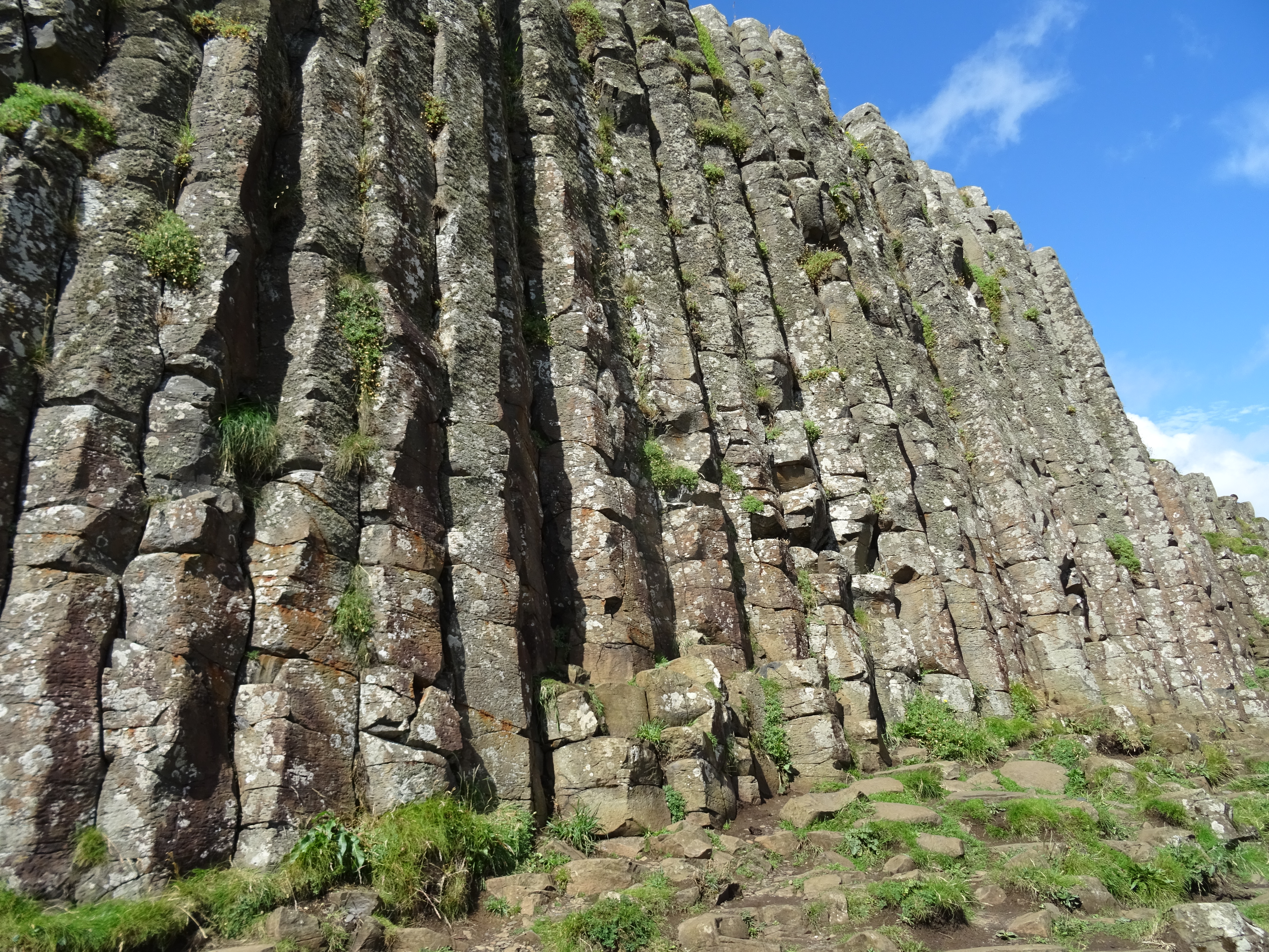 A proximité de la Chaussée des Géants d’autres formations volcaniques prismées sont visibles comme ici le site des "Tuyaux d’Orgues" ou "Organ Pipes". La formation basaltique tholéitique qui appartient à la province magmatique Nord-Atlantique s’est mise en place un peu avant l’ouverture de l’océan Atlantique Nord, au paléogène, il y a 60Ma.