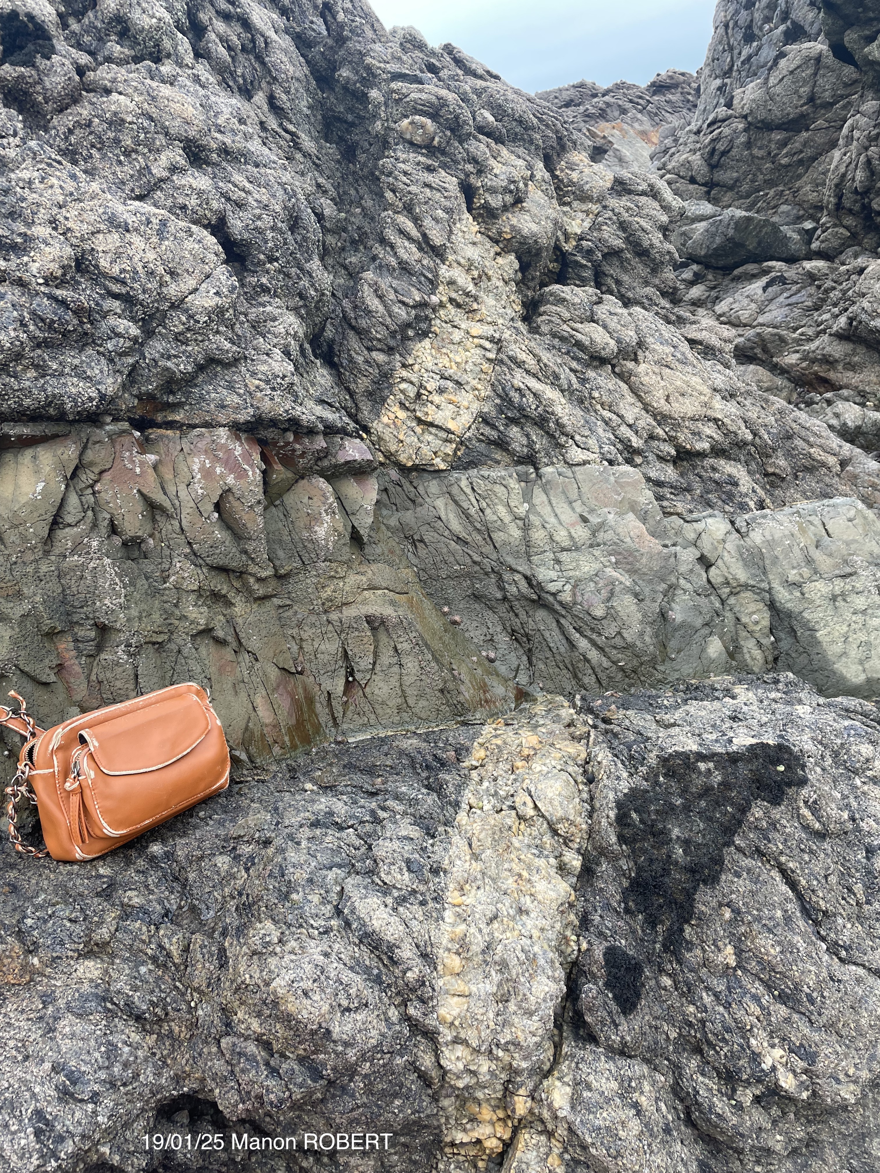 2- filon d’hydratation de la migmatite (?) + décrochement senestre (? il n’y a pas d’autres indices)