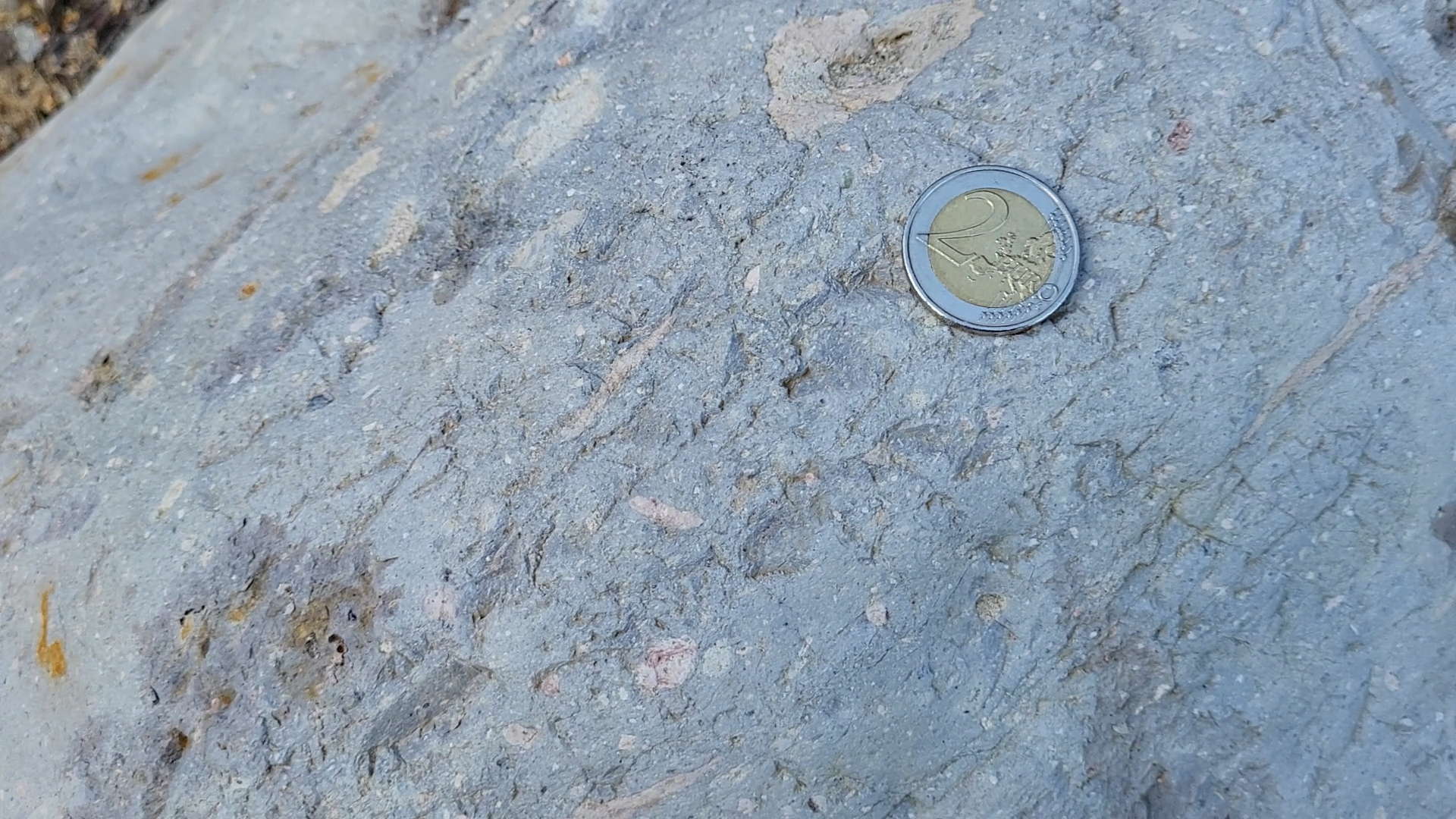 La couleur : Une teinte gris-bleuâtre à violette, très typique des formations volcaniques du massif du Monte Cinto et de la vallée du Fango (dont dépend Montestremu).