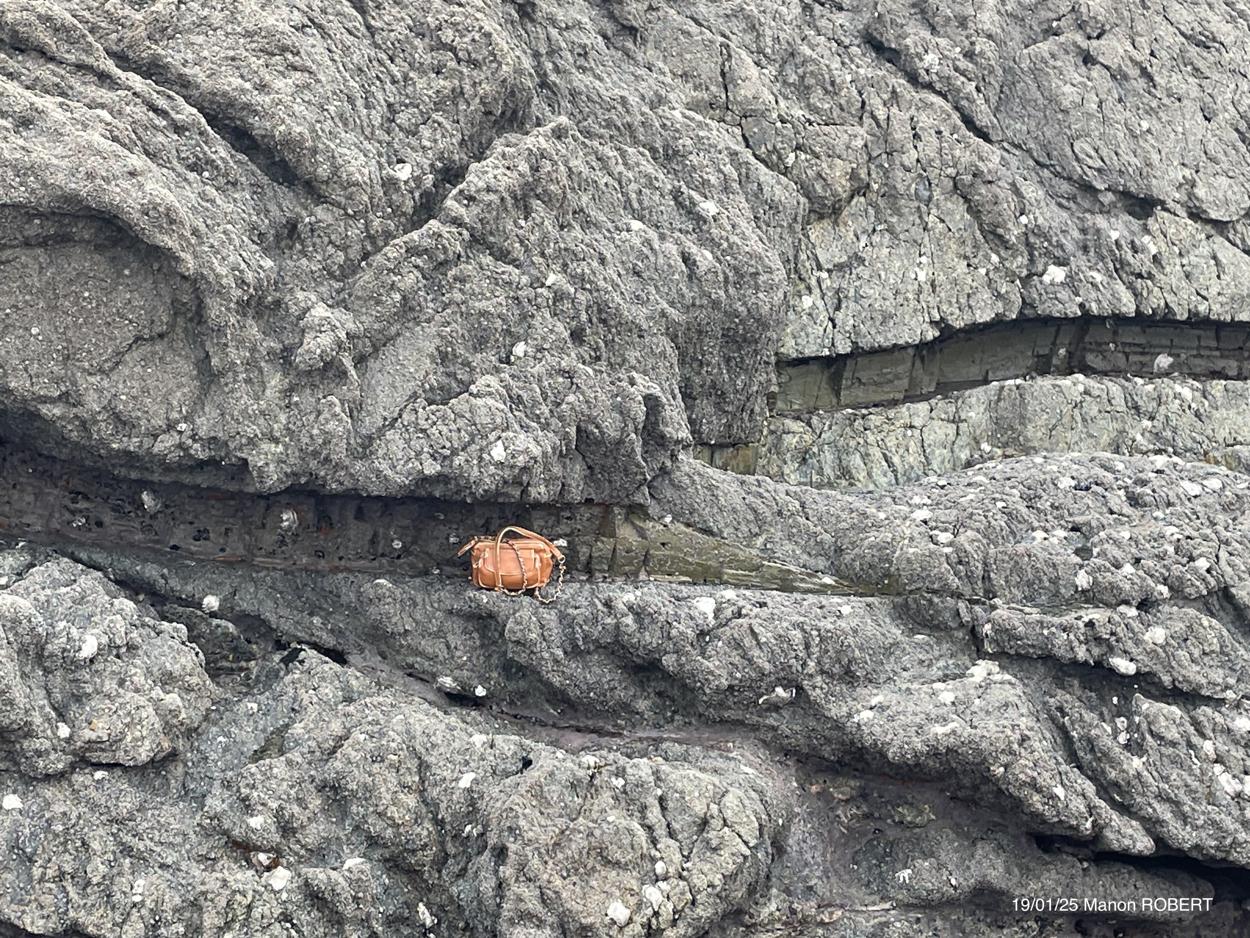 Zoom sur le filon de dolérite dans la roche migmatite près de Saint Malo