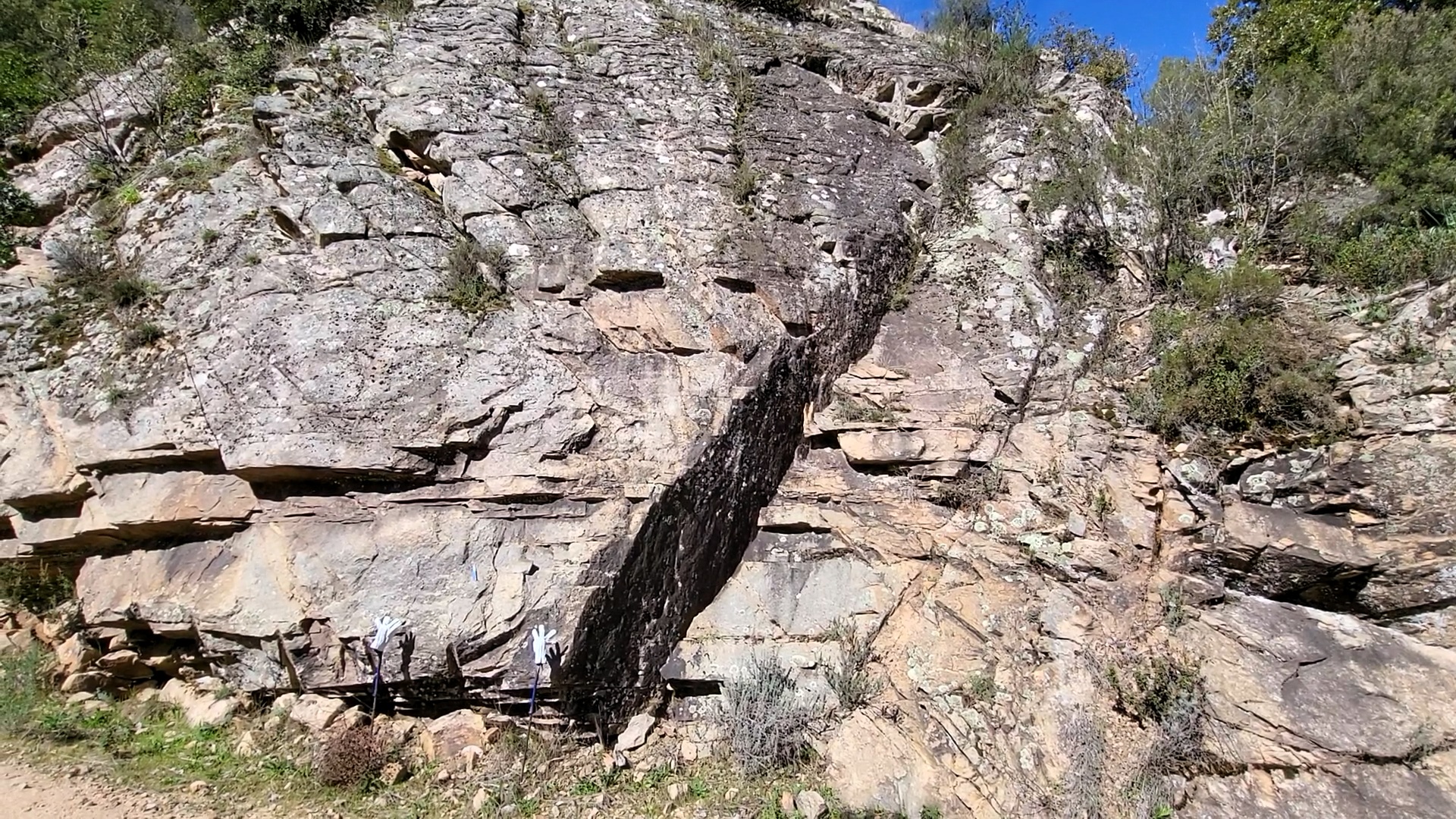 La couleur orangée est marquée par la présence de fayalite et d’hastingsite (très riches en fer) et cela explique pourquoi la roche est si marqué par la rouille en surface. Ces minéraux s’altèrent très vite en libérant des oxydes de fer.