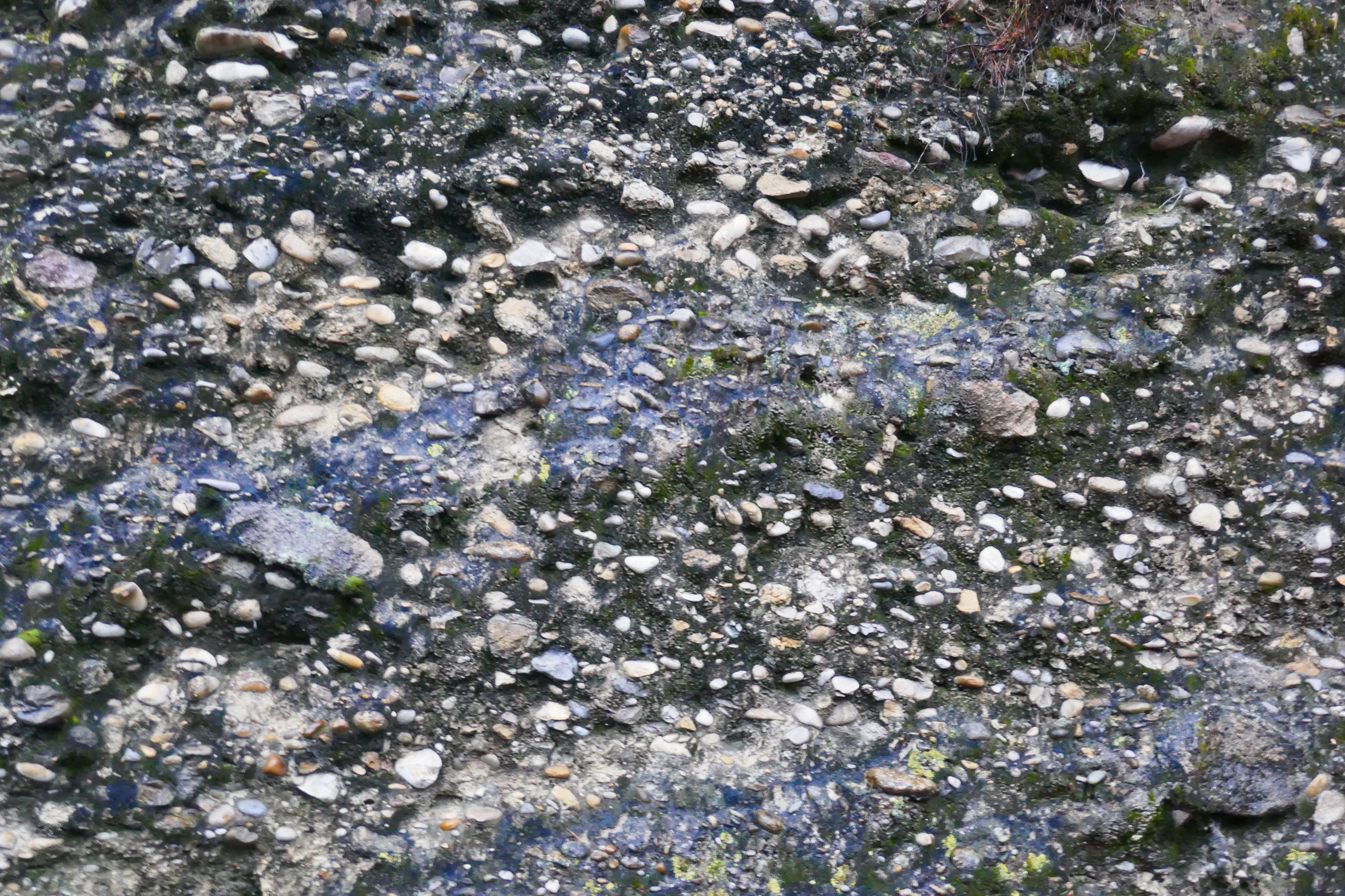Le secteur au nord de Nice a un sous-sol constitué d’une épaisse formation de galets soudés et cimentés. Cette roche sédimentaire détritique est un conglomérat à élément arrondis ce qui en fait un poudingue. Ce sont des roches jeunes à l’échelle des temps géologiques : Pliocène (-5,3Ma à 2,5Ma) voir même début du quaternaire (après -2,5 Ma). Durant l’assèchement partiel de la Méditerranée au Messinien (-7,2 à -5,3Ma) la vallée du Var a été fortement creusée (comme d’ailleurs le Rhône et ses affluents) ce qui a engendré une assez vaste dépression. Avec la remontée du niveau marin un delta s’est mis en place où se sont déposés les galets. En parallèle le soulèvement des Alpes maritimes le cour du Var s’est enfoncé permettant la mise en place de terrasses emboîtées. Aujourd’hui ces conglomérats/poudingues sont visibles dans tout le cours inférieur du Var et notamment ici, derrière Nice où ce terrain sert notamment de support au petit vignoble très réputé de Bellet.