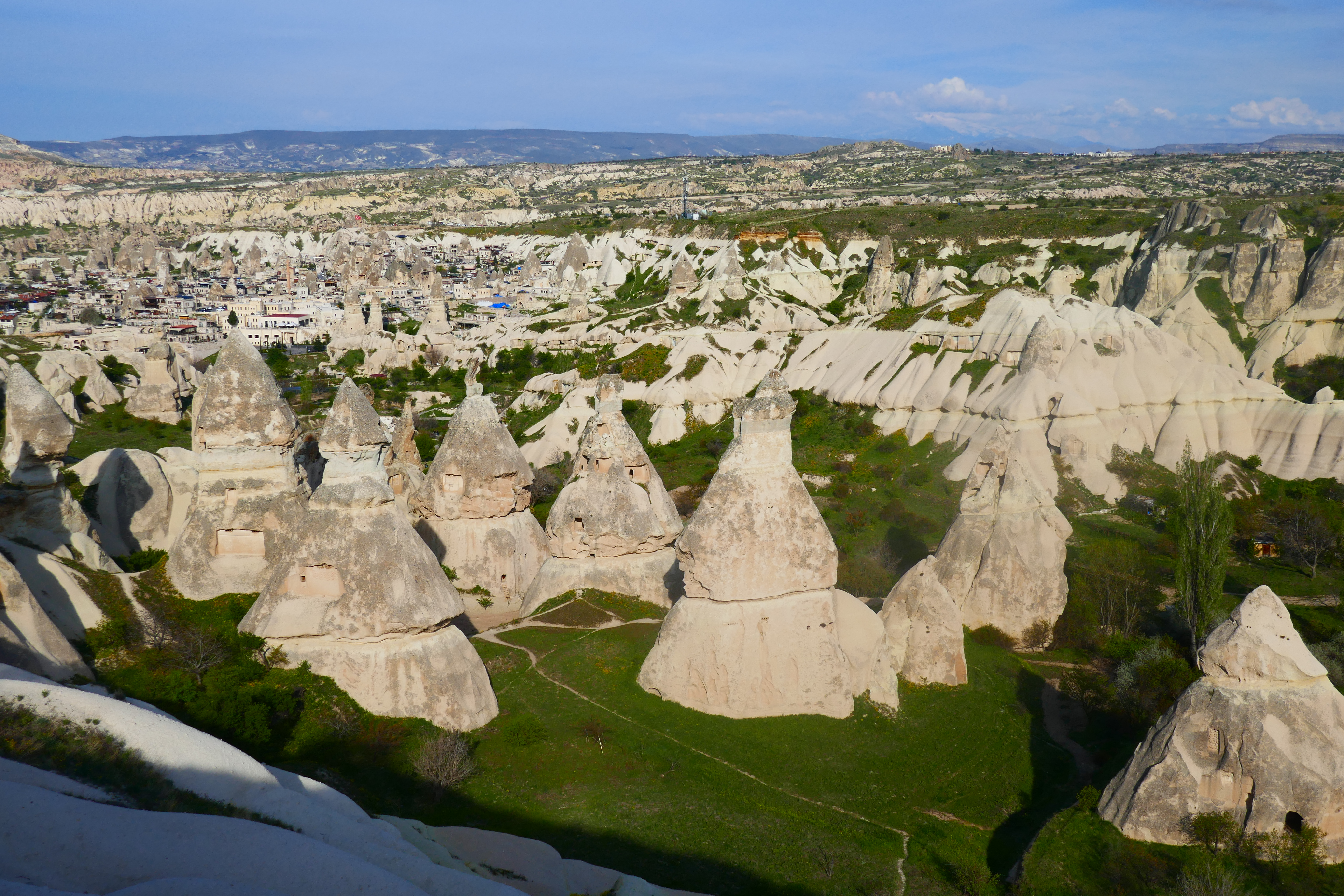 La région de la Cappadoce a été recouverte par les volcans de la région de nombreuses coulées d’ignimbrites entre -12Ma et 2Ma principalement. Le tuf ignimbritique a une dureté assez faible, ce qui a entrainé une érosion importante qui a créé ces paysages célèbres fait de pinacles et de cheminées de fées qui ont été parfois creusés et aménagées en habitat troglodytique.
