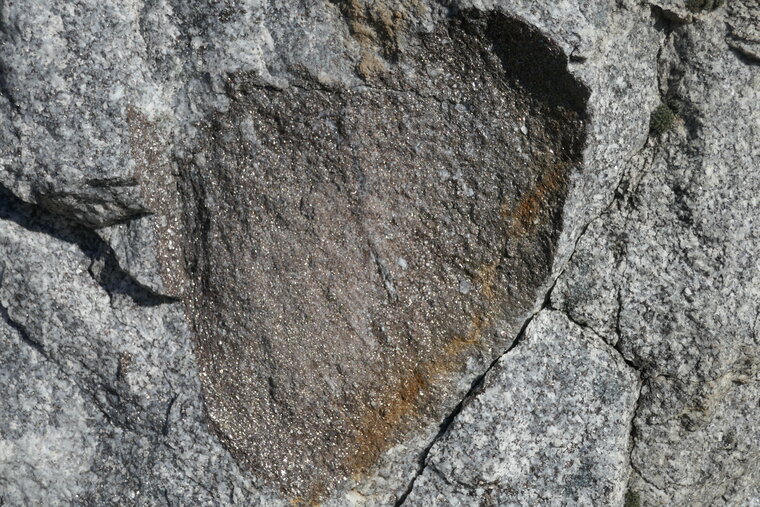 Ces enclaves constituées en très grande partie de micas (noirs ou biotite) sont courants dans les granites d’anatexie c’est-à-dire quand le magma provient de la fusion de la croûte continentale. En effet la fusion partielle de la roche source laisse très souvent un résidu constitués de minéraux très réfractaires comme les micas : Ce sont les restites dont des morceaux peuvent être emportés par le magma granitique et qu’on retrouve sous formes d’enclaves surmicacées comme ici.