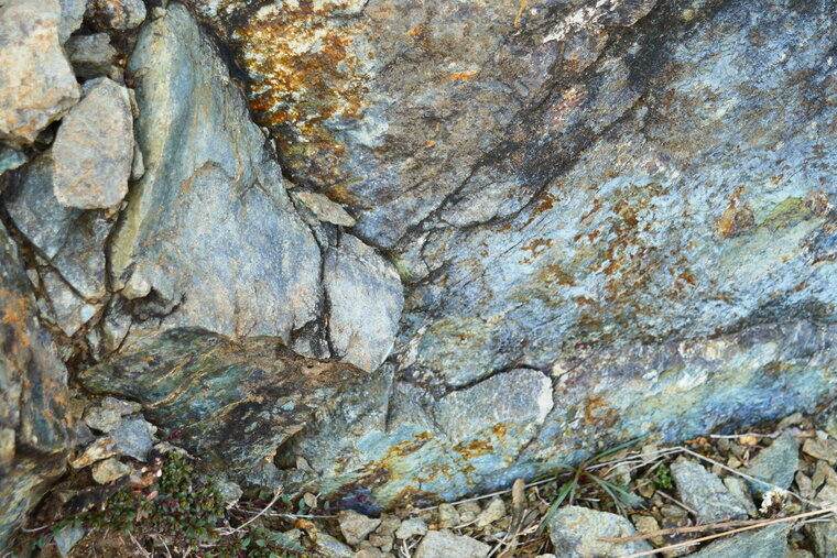 Au nord de l’Ardèche, un petit affleurement de serpentinite est visible près du hameau d’Eteize. La serpentinite est issue des péridotites du manteau dont l’olivine a été altérée par altération/métamorphisme en serpentine. Si en général la partie mantellique de la lithosphère n’affleure pas en surface, parfois au cours de la fermeture d’espaces océaniques, des morceaux de lithosphère océaniques (dont des parties mantelliques)peuvent être arrachés et charriés en surface. C’est un petit morceau du manteau lithosphérique qui apparait ici avec ses roches de serpentinite.