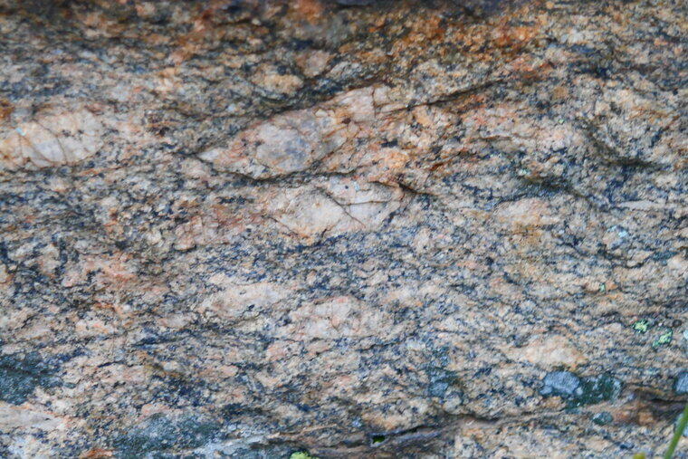 Le socle du Haut-Vivarais apparait largement au nord de l’Adèche : granite, gneiss... Ici nous avons un gneiss anatectique qui est produit lors des stades avancés du métamorphisme où une fusion partielle de la roche a lieu.