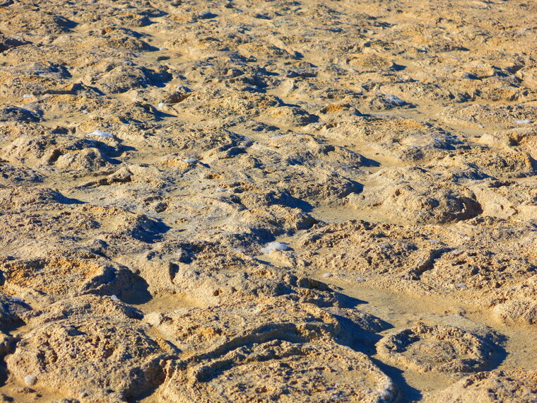 Les thrombolites sont des microbialites à structure globuleuse et agglomérée. Comme tous les microbialites ils sont issus de l’action de biofilms bactériens. Ici comme dans le cas des stromatolithes ce sont des cyanobactéries (bactéries photosynthétique autrefois appelées algues bleues) qui font précipiter de la calcite en même temps qu’elles piègent des particules sédimentaires. Contrairement aux stromatolithes la structure des thrombolites n’est pas laminée mais agglomérée et globulaire formant des sortes de grumeaux. L’Ouest de l’Australie qui possède de nombreuses baies et de lacs à la forte salinité est un environnement favorable au développement des microbialites qui sont aujourd’hui plutôt rares mais qui au protérozoïque constituaient un des principaux agents de production de carbonates biogéniques et de production d’oxygène par photosynthèse.